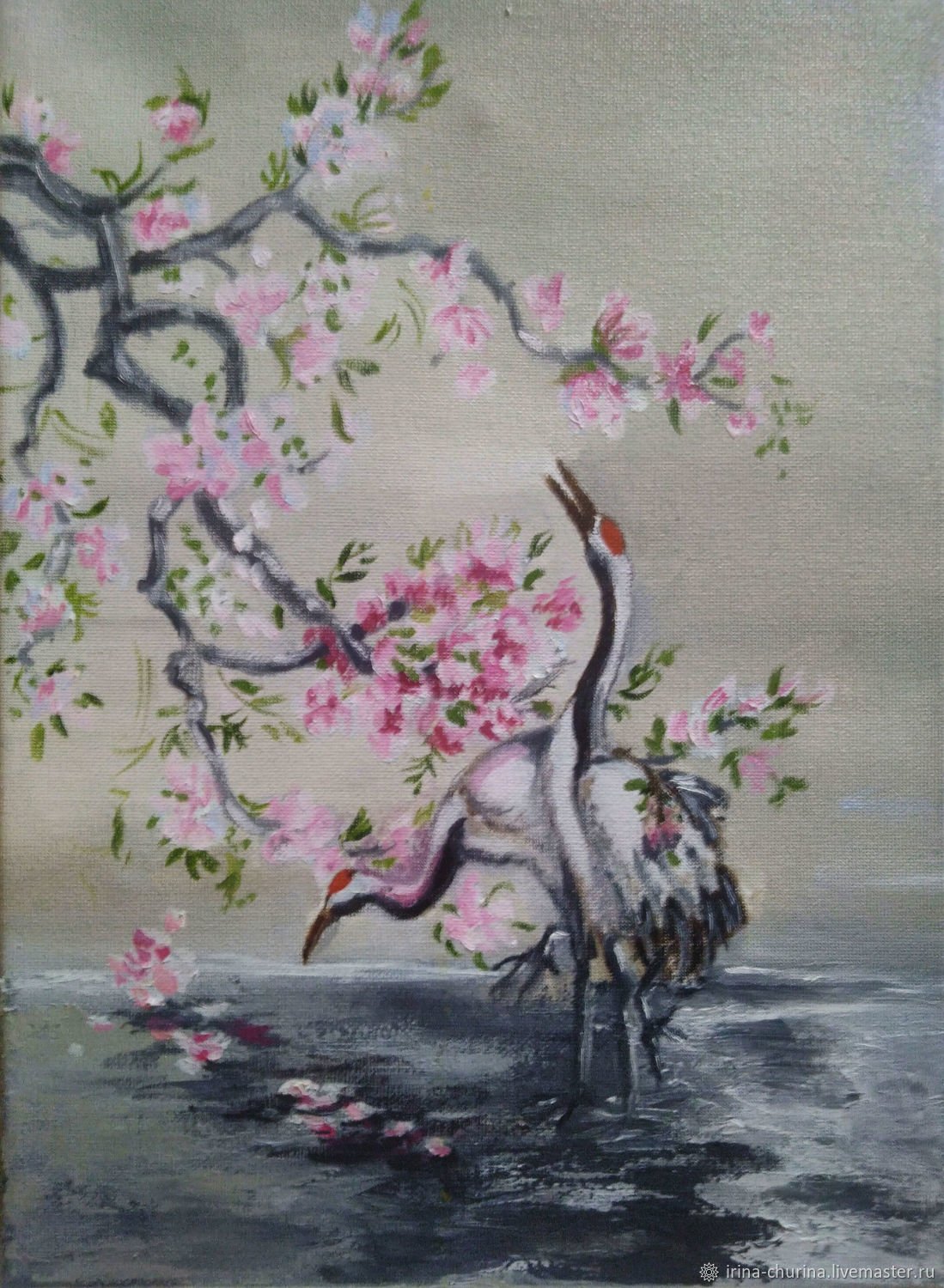 Сакура живопись журавль