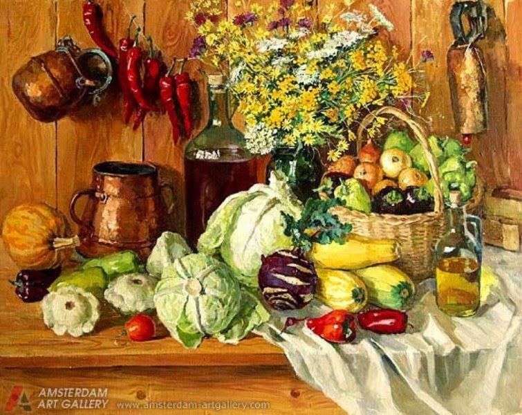 Натюрморт с овощами живопись