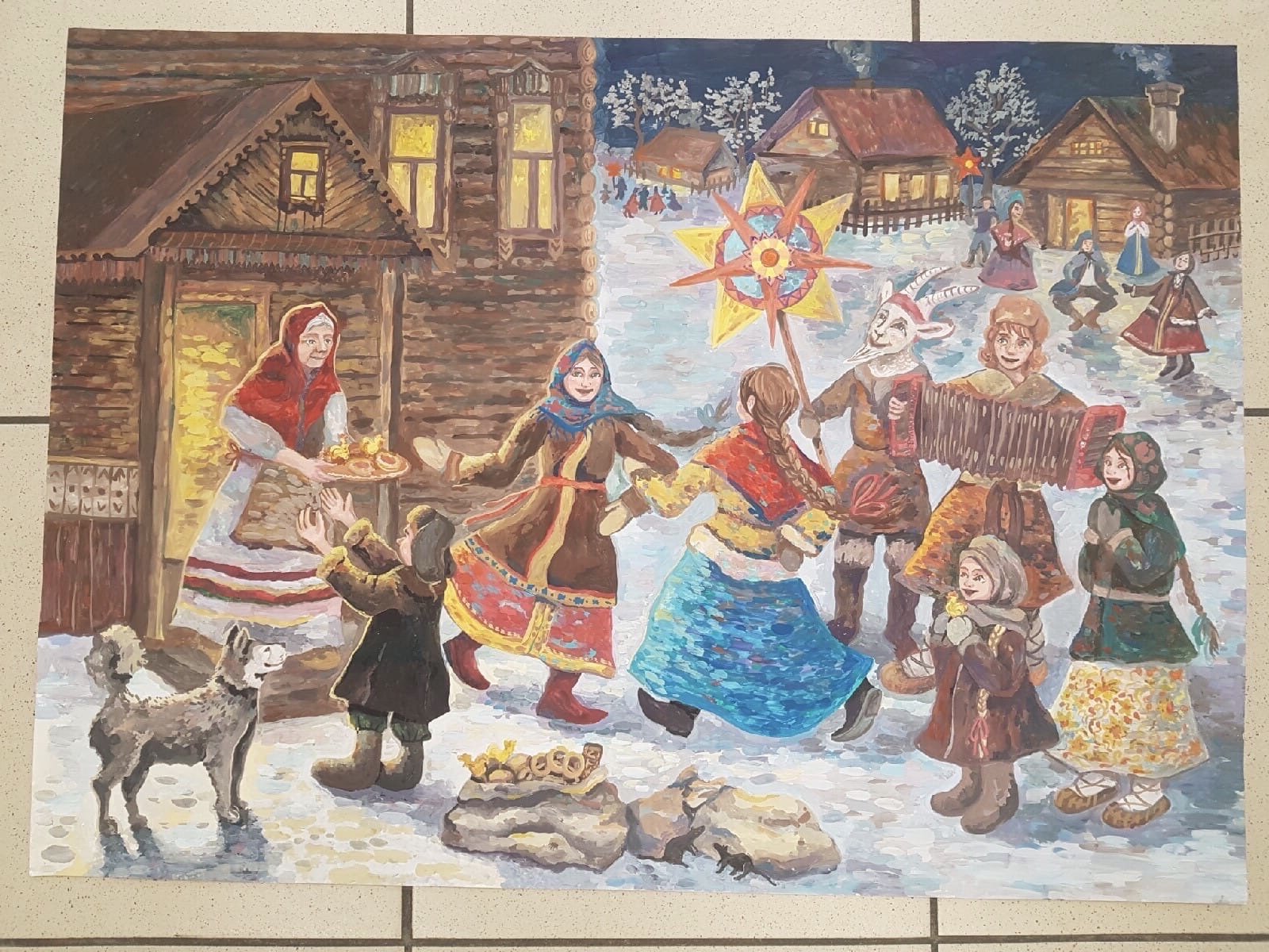 Живопись колядок - это уникальное искусство, которое переносит нас в мир традиций и обрядов. Каждая картина оживляет дух Рождества и Нового года, заполняя наши сердца радостью и теплом. Яркие цвета, изображения нарядных девушек и праздничных сцен создают атмосферу веселья и празднования. Колядки живопись великолепно передают настроение праздника и позволяют нам окунуться в уникальную культуру народов их происхождения. Они не только являются украшением интерьера, но и переносят нас в волшебный мир, наполненный радостью и сказочностью. Картины с колядками становятся настоящими произведениями искусства, которые вызывают восторг и восхищение, идеально подходят для создания праздничной атмосферы и станут прекрасным подарком для всех любителей рождественских традиций и народного искусства.
