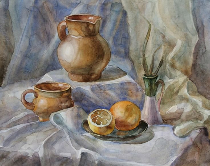 Акварельные натюрморты с посудой
