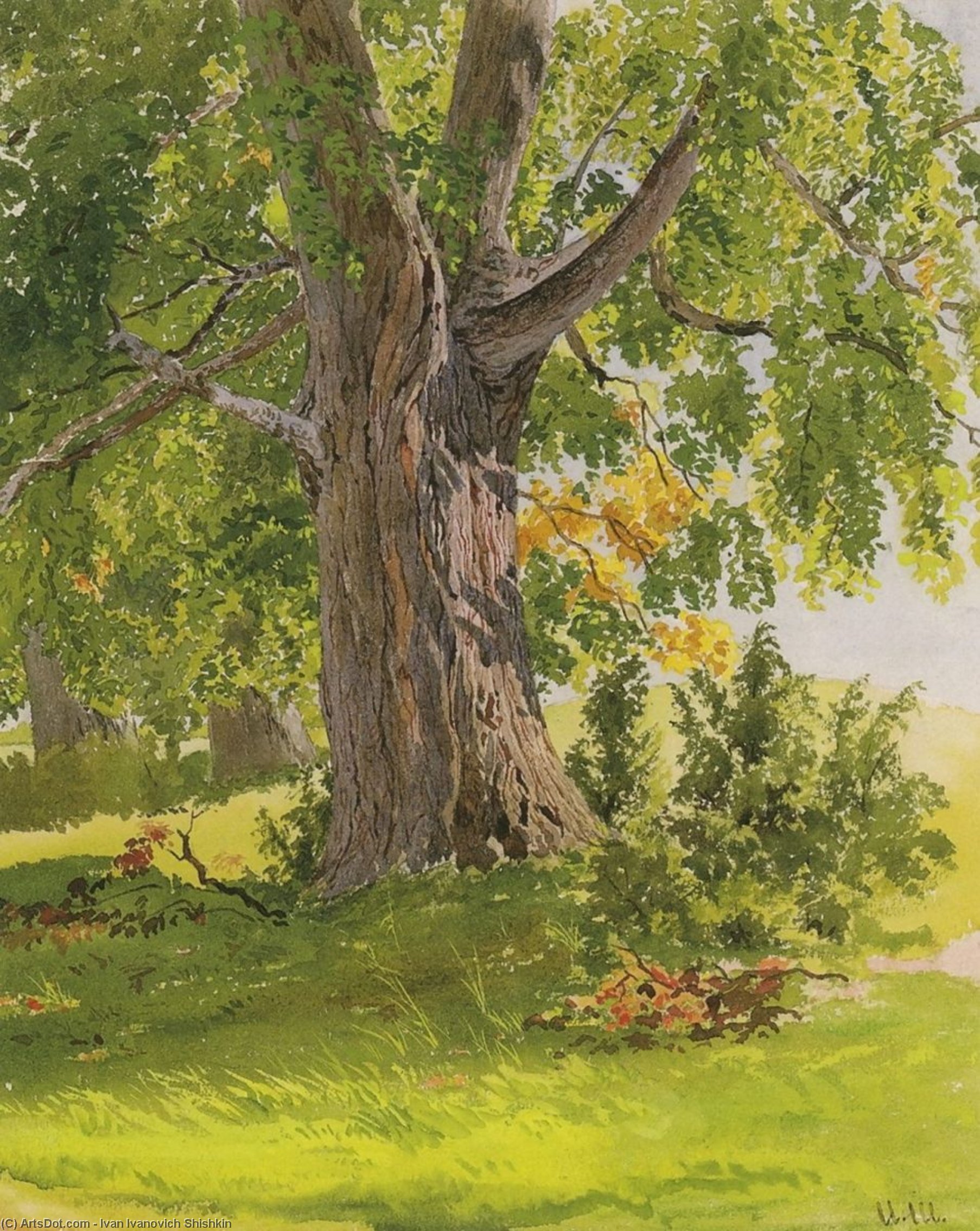 Иван Шишкин. Дуб. Акварель