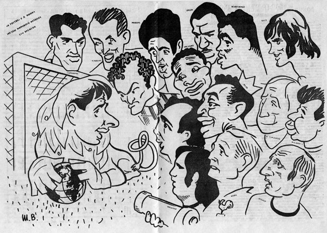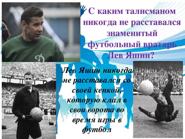 Лев Яшин - легендарный советский футболист, который считается одним из величайших вратарей всех времен. Его талант, характеризующийся непревзойденными рефлексами, мастерством и уверенностью на поле, принес ему заслуженное признание и уважение со стороны футбольного сообщества по всему миру. Как карикатура, образ Льва Яшина часто используется для передачи его неподражаемого стиля игры и выдающихся способностей. Она подчеркивает его характерные черты, такие как непременная черная форма и своеобразная поза на поле. Карикатура Льва Яшина – это не только ода его футбольным достижениям, но и символ его непревзойденной величины и значимости в истории футбола.