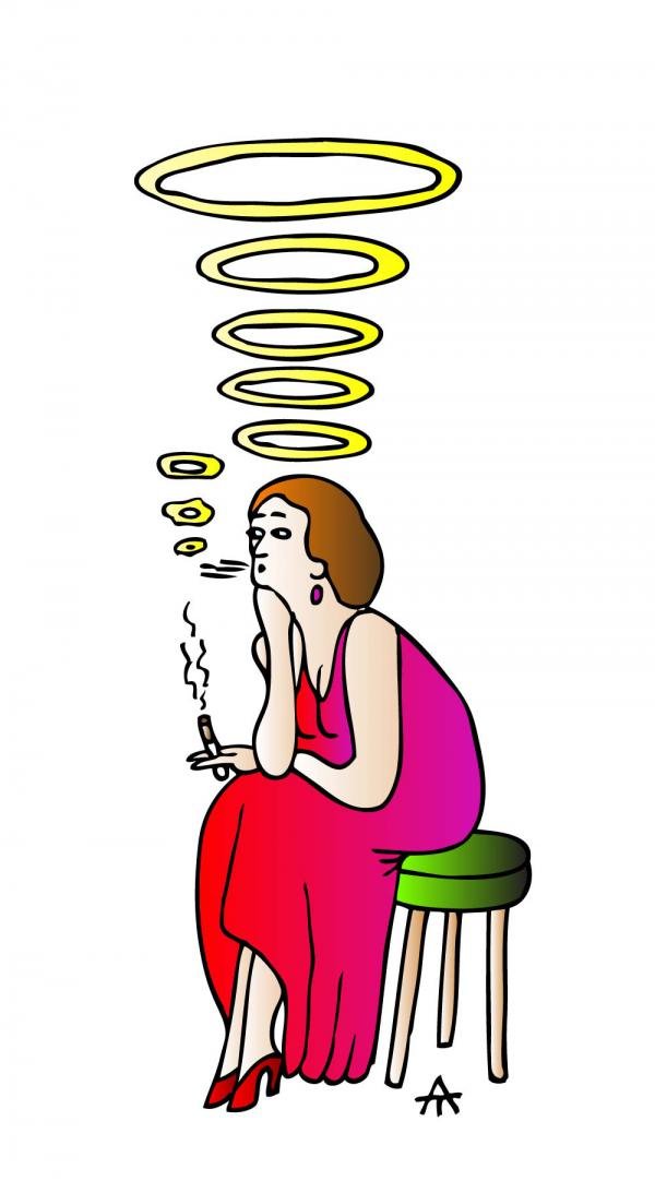 Карикатура "Курящая женщина" - это остроумное изображение, которое подчеркивает негативные последствия курения для здоровья женщин. Взглянув на эту картину, мы видим характерную сцену, где женщина сигаретой в руке демонстрирует свою зависимость от никотина. Ее лицо выражает стресс и усталость, а выделенный дым окружает ее, символизируя загрязнение окружающей среды и кардиологические проблемы, которые могут возникнуть из-за этой вредной привычки. Карикатура позволяет нам задуматься о важности здорового образа жизни и отказе от курения, призывая нас к осознанному выбору и заботе о себе.