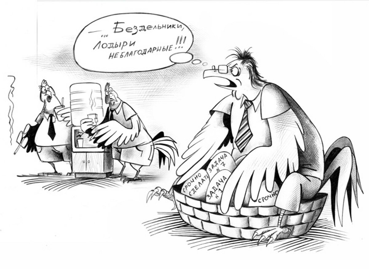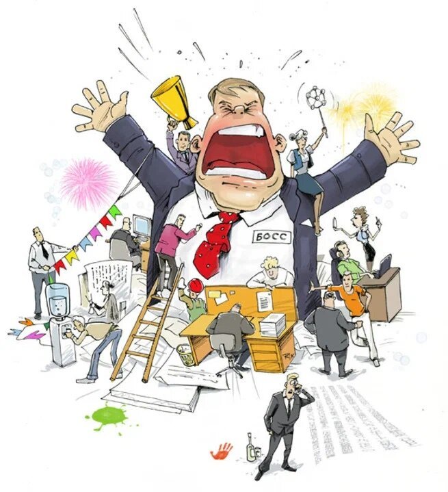 Великолепная карикатура, изображающая смешное ироничное отношение к организационным структурам и их многочисленным начальникам. В ней нарисовано несколько персонажей, каждый из которых является начальником для другого, создавая забавную цепь иерархии внутри команды или организации. Эта карикатура с легкостью передает тот общеизвестный феномен, когда количество руководителей может быть пропорционально больше количества подчиненных. Она вызывает улыбку и заставляет задуматься о сложностях, с которыми сталкиваются работники в таких ситуациях, одновременно развлекая и поднимая настроение.