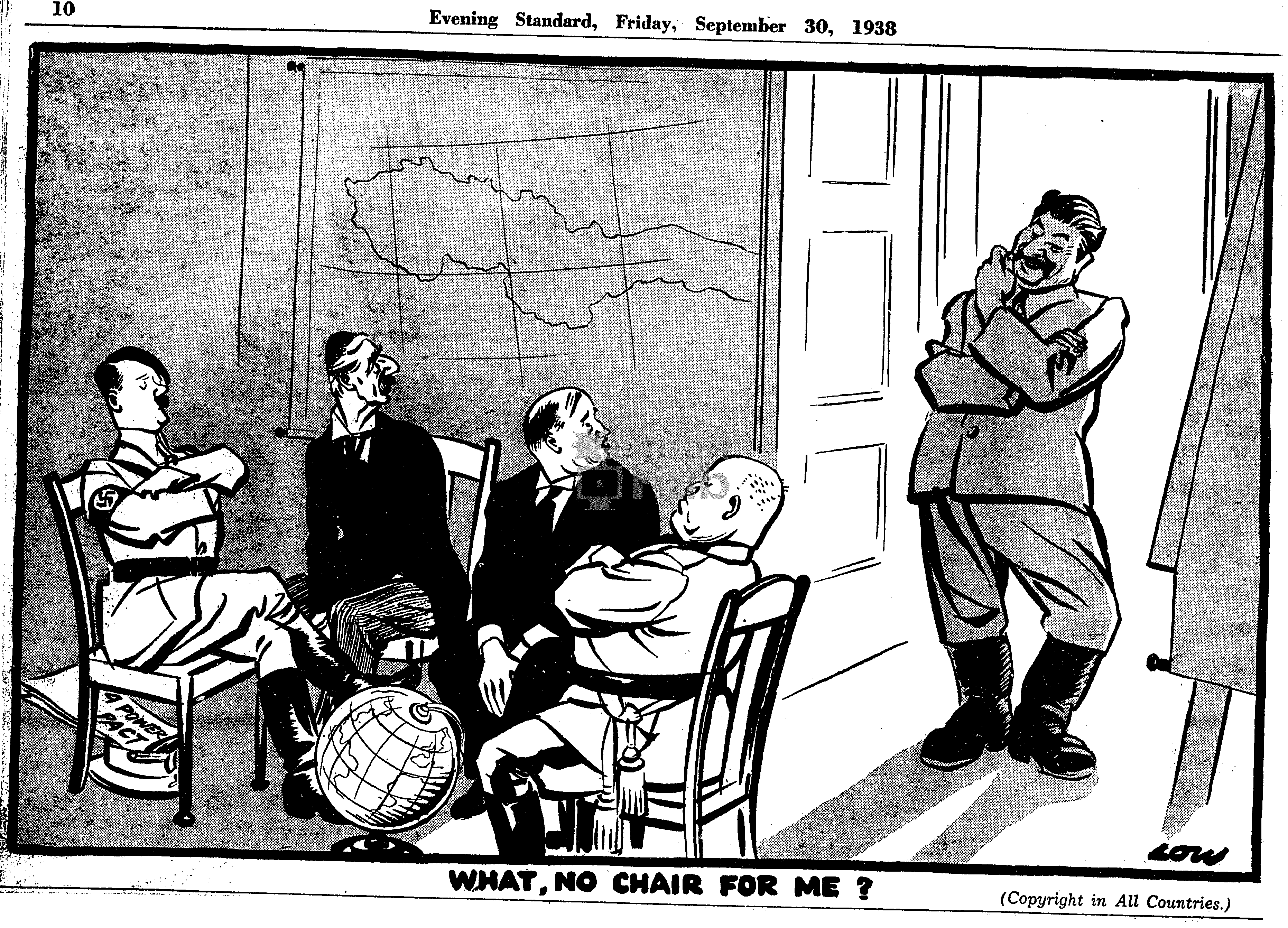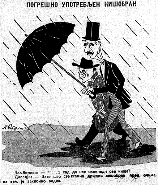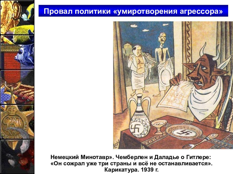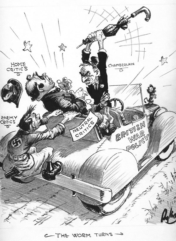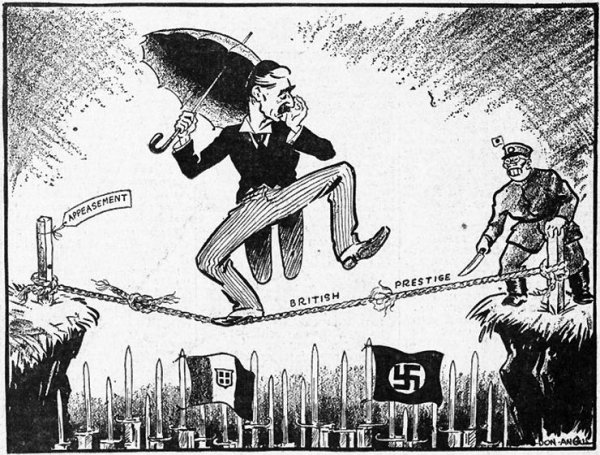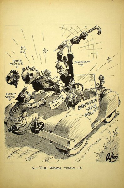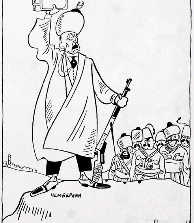 Карикатура на Чемберлена – это сатирическое изображение английского политика Артура Невилла Чемберлена, который стал известен своей политикой appeasement (уступок) перед нацистской Германией в период между Первой и Второй мировыми войнами. Карикатуры на Чемберлена часто отражали его слабость и неспособность противостоять агрессии Германии, а также его непопулярное решение подписать Мюнхенское соглашение, которое предоставило Германии часть территорий Чехословакии. Такие карикатуры были важным инструментом пропаганды, чтобы показать неэффективность политики appeasement и предупредить о возможных последствиях. Они вызывали смех и размышления, подчеркивая важность решительного действия и защиты свободы и справедливости.