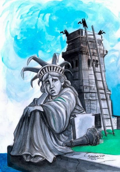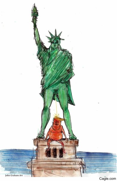 Статуя Свободы, изначально называвшаяся "Свобода, просвещающая мир", является одним из самых узнаваемых символов Америки и образцом архитектурного искусства. Построенная в 1886 году в Нью-Йорке на острове Либерти, она символизирует свободу и демократию. Карикатуры на Статую Свободы часто используются для передачи политических и социальных сообщений, высмеивания определенных идеологий или событий. Как карикатура, она может быть использована для создания юмористического эффекта или вызова общественного внимания к конкретным проблемам. Такие изображения позволяют зрителям увидеть Статую Свободы с новой интерпретацией и подчеркнуть различные точки зрения на ее символическое значение.