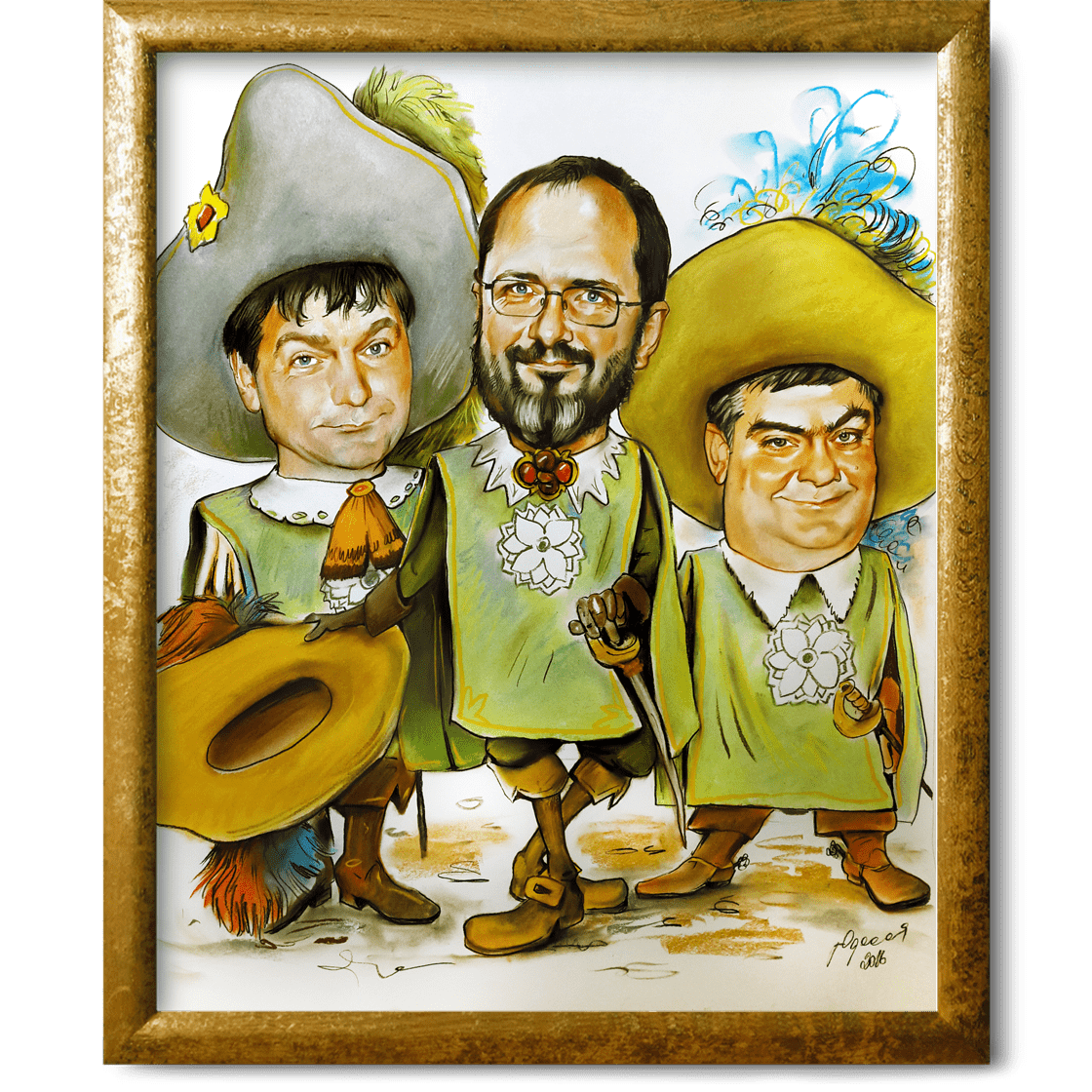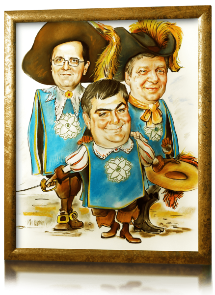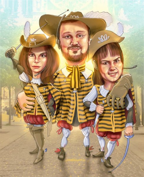 Три мушкетера карикатура - это яркое и забавное изображение трех героев известного романа Александра Дюма. Каждый из мушкетеров - Атос, Портос и Арамис - представлен в комической и неповторимой манере, подчеркивающей их индивидуальность и особенности. Карикатурные черты лиц, выражения глаз и позы создают юмористическую атмосферу и раскрывают характеры персонажей. Такая карикатура привлекает внимание своей оригинальностью и становится ярким элементом декора или подарка для поклонников литературы и юмора.