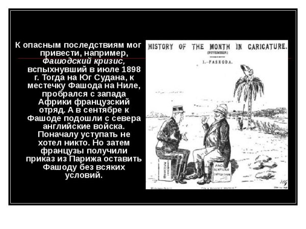 Карикатура "Фашодский кризис" - это яркое и сатирическое произведение искусства, которое отражает насущные проблемы и конфликты, связанные с финансовыми и политическими аспектами. Она затрагивает тему финансовых кризисов, вызванных несбалансированными экономическими системами и коррупцией во властных структурах. Карикатурный стиль изображения позволяет автору насмешиться над ситуацией и передать критическую точку зрения на проблемы современного общества. В целом, "Фашодский кризис" - это смешное и одновременно глубокое произведение, которое призывает задуматься над сложностями, с которыми мы сталкиваемся в современном мире.