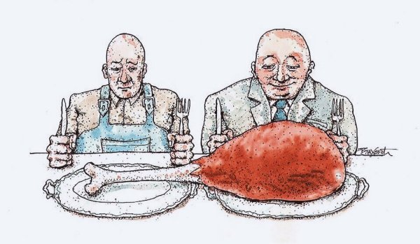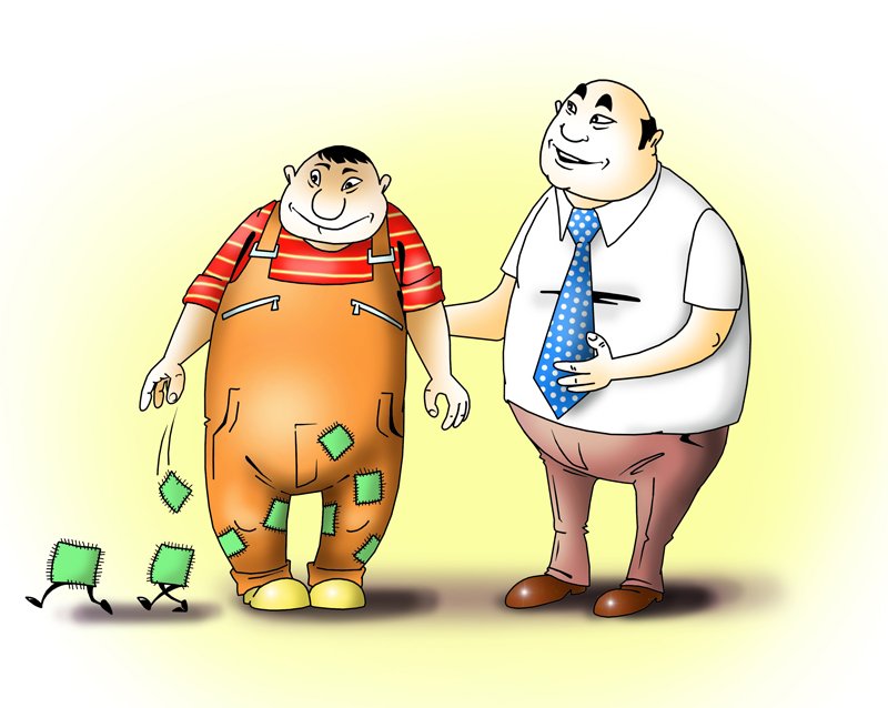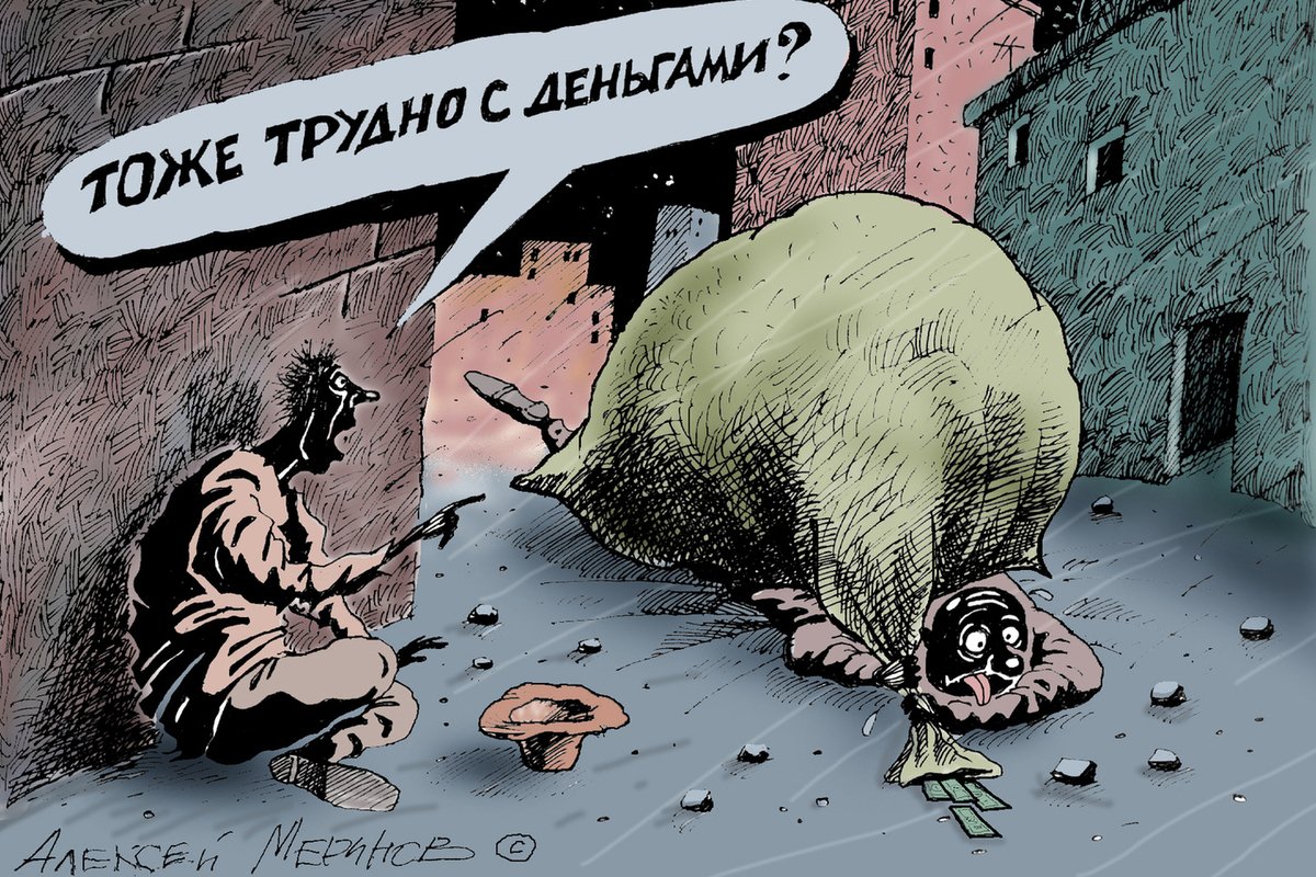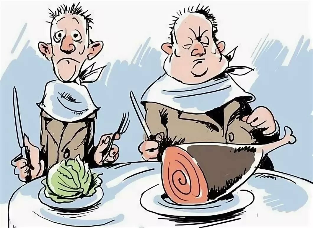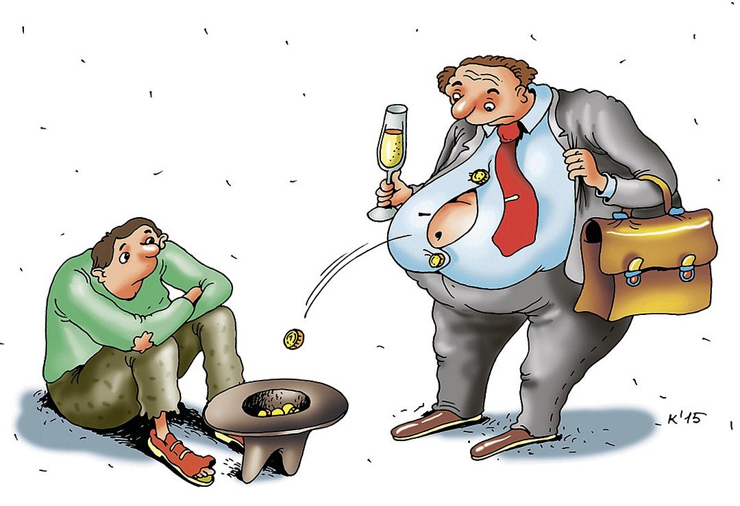 Карикатура "Богатый и бедный" - это яркое произведение искусства, которое наглядно и с юмором показывает различие между двумя социальными классами. На рисунке изображены два персонажа: один представляет собой успешного, состоятельного человека в нарядном костюме, окруженного роскошью и изобилием. Второй персонаж представлен как бедняк, в старой одежде и с грустным выражением лица. Карикатура вызывает не только улыбку, но и задумывает о проблемах неравенства и социальной справедливости. Она призывает зрителя задуматься о том, каким образом различия в благосостоянии могут влиять на жизнь людей и как можно достичь более равномерного распределения ресурсов в обществе. Эта карикатура яркий пример того, как искусство может стать средством для передачи важных социальных сообщений.