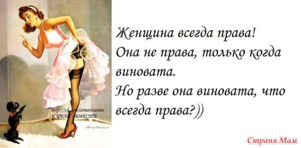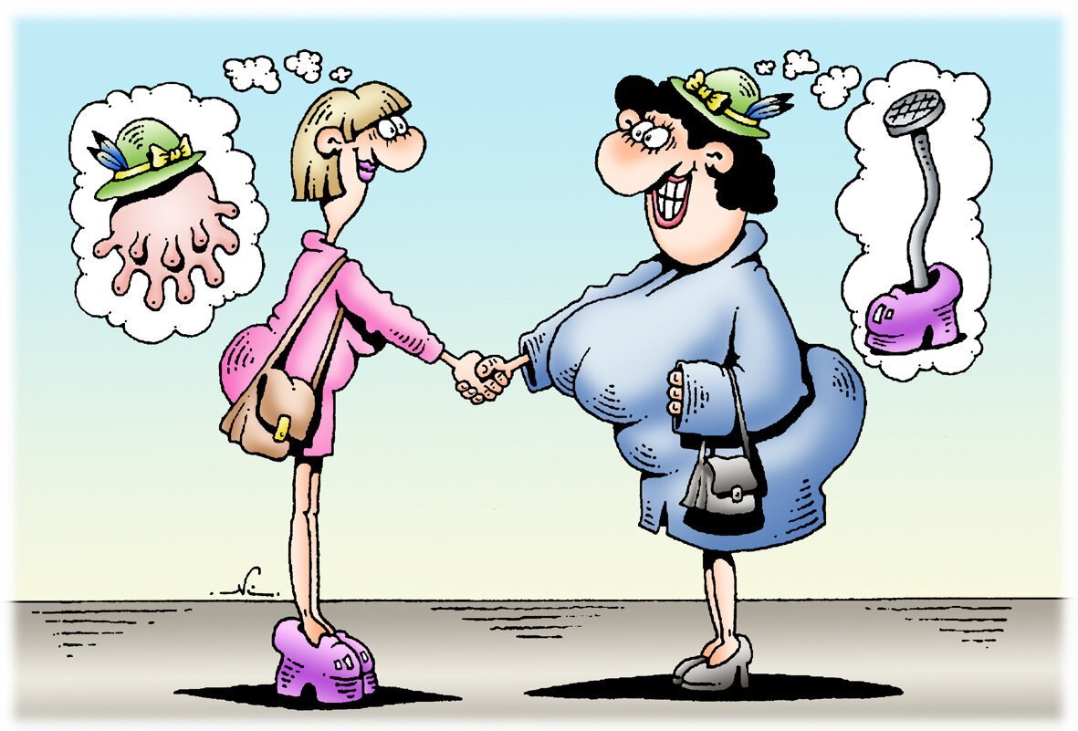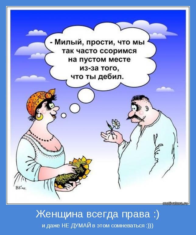 "Женщина всегда права" - карикатура, которая со смесью юмора и иронии отражает распространенный стереотип о женской непогрешимости в принятии решений. В этой картине автор сатирически подчеркивает, что мнение женщины всегда является окончательным и неоспоримым, даже если оно может показаться нелогичным или противоречить фактам. Карикатура вызывает улыбку и призывает задуматься о нашем отношении к гендерным стереотипам и равноправию полов в обществе. Она напоминает нам о необходимости анализировать свои предубеждения и стремиться к более справедливому и равноправному миропорядку.