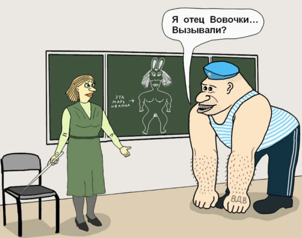 Карикатура "Вовочка и учительница" - это забавное изображение, которое передает смешные моменты из школьной жизни. На рисунке изображен мальчик Вовочка и его учительница. Вовочка, как обычно, попадает в различные комические ситуации, вызывающие улыбку у зрителя. Учительница, в свою очередь, поражена поведением Вовочки и пытается сохранять серьезность и авторитет. Карикатура позволяет нам посмеяться над подростковыми шалостями и напоминает о том, что школьная жизнь полна веселья и неожиданных событий.