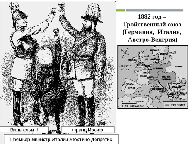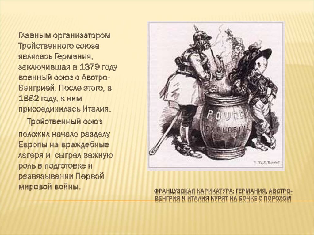 Карикатура "Антанта и Тройственный союз" - это яркое произведение искусства, которое сатирично отображает политическую историю. Рисунок основан на символах и персонажах, связанных с Антантой и Тройственным союзом - двумя военными альянсами, сформированными во время Первой мировой войны. В карикатуре можно увидеть противостояние и соперничество между Антантой, включающей Францию, Великобританию и Российскую империю, и Тройственным союзом, состоящим из Германии, Австро-Венгрии и Италии. Это произведение искусства не только развлекает зрителя, но также позволяет глубже понять сложные политические отношения и период истории, который оно изображает. Карикатура "Антанта и Тройственный союз" является замечательным примером того, как искусство может помочь нам осознать исторические события и политические конфликты.