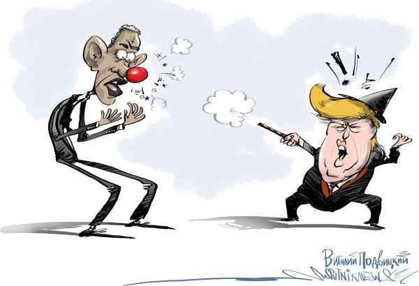 Описание: Карикатуры, изображающие Дональда Трампа и Барака Обаму, являются популярным способом визуализации и комментирования их политических действий и характеристик. В таких карикатурах часто используются узнаваемые черты обоих политиков, чтобы передать их индивидуальные особенности и создать сатирическое изображение. Эти карикатуры могут быть использованы в политическом юморе, журналистике или визуальных мемах, чтобы выразить определенное мнение или вызвать реакцию у зрителей.
