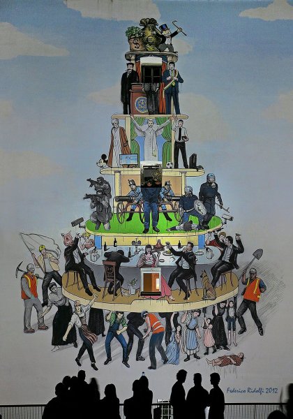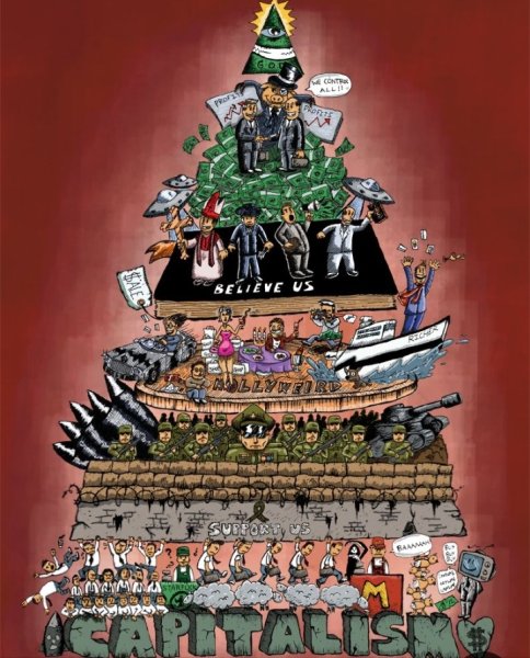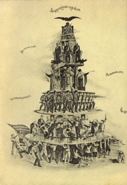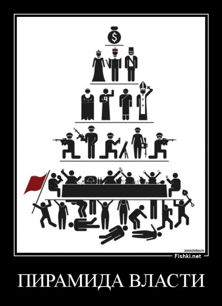 Пирамида власти - это карикатурное изображение, которое ярко и проникновенно отражает неравномерность распределения власти в обществе. Эта картина представляет собой графическое изображение иерархии социальной структуры, где на вершине пирамиды находятся люди с самым большим политическим и экономическим влиянием, а внизу находится большая масса населения, лишенная значимости и возможности влиять на принятие решений. Пирамида власти карикатурно подчеркивает тот факт, что в обществе существуют неравенства и систематическое отчуждение многих граждан от принятия важных решений, что может вызывать недовольство и несправедливость. Эта карикатура является не только забавным изображением, но и сильным комментарием о социальных и политических реалиях, которые могут вызывать размышления и стимулировать общественный диалог о важности равенства и участия каждого гражданина в принятии решений, затрагивающих их жизнь.