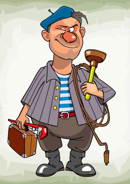 Карикатура "Слесарь сантехник" - это яркое и остроумное художественное изображение профессионала, специализирующегося на ремонте и обслуживании сантехнических систем. В этой карикатуре художник с помощью упрощенных форм и выразительных деталей передает особенности работы слесаря сантехника, его навыки и проблемы, с которыми он сталкивается в повседневной практике. Часто такие карикатуры имеют юмористический оттенок и вызывают улыбку у зрителя, позволяя нам по-новому взглянуть на эту необходимую и важную профессию. Карикатуры "Слесарь сантехник" можно использовать для оформления различных материалов, связанных с сантехническими услугами или для добавления юмора и оригинальности в соответствующий контент.