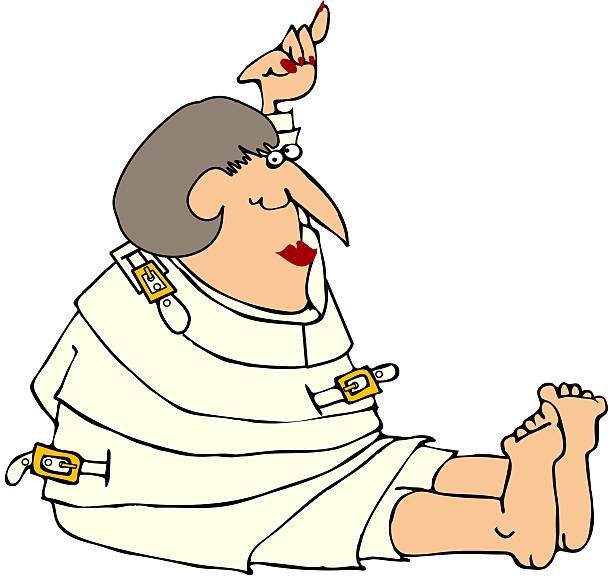 Карикатура "Псих в смирительной рубашке" - это потрясающая иллюстрация, которая передает насмешливую и сатирическую картину психических расстройств. На первый взгляд, она может показаться шокирующей или провокационной, но в ее основе лежит глубокое понимание и ироничный взгляд на сложности, с которыми сталкиваются люди с психическими проблемами. Карикатура не только вызывает улыбку и развлекает зрителя, но и заставляет задуматься о том, как важно относиться к этим людям с пониманием и состраданием. Это произведение искусства напоминает нам о необходимости бороться со стигмой и предрассудками в отношении психического здоровья, а также о важности поддержки и инклюзии для всех людей, независимо от их состояния. В целом, карикатура "Псих в смирительной рубашке" является мощным и эмоциональным произведением искусства, которое вызывает дискуссии и оставляет долгое впечатление на зрителя.