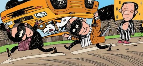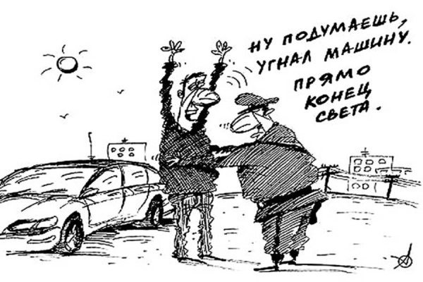 Карикатура "Угон автомобиля" - это юмористическое изображение, которое иронично отражает ситуацию угона автомобиля. В ней может быть изображено как сам процесс угона, так и его последствия. Часто в карикатуре используются яркие и забавные детали, чтобы подчеркнуть абсурдность такого преступления. Такое изображение может вызывать улыбку и развлечь зрителя, показывая ему неожиданный взгляд на обыденную ситуацию. Карикатуры на тему угона автомобиля могут быть запоминающимися и вызывать положительные эмоции у людей.