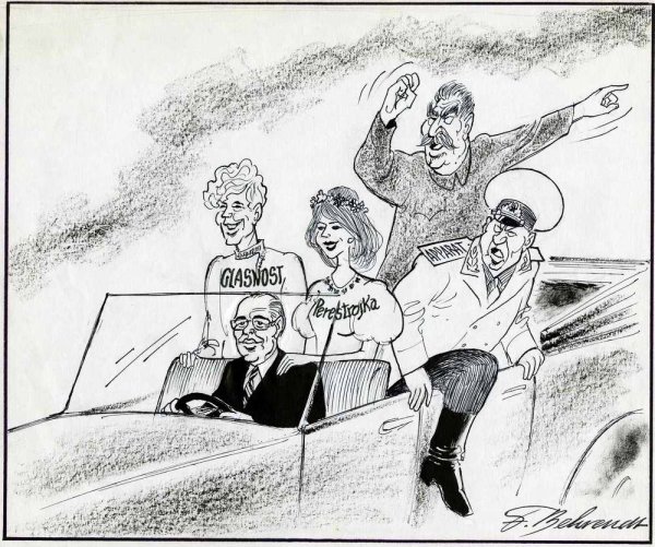 Карикатура на Михаила Горбачева - это юмористическое изображение бывшего генерального секретаря ЦК КПСС, который стал последним лидером Советского Союза. В карикатуре часто выделяются характерные черты его внешности, такие как родинка на лбу, знаменитые очки и улыбка. Также могут быть изображены символы, связанные с его политикой, например, перестройка или разрушение Берлинской стены. Карикатуры на Михаила Горбачева обычно играют на иронии и сатире, подчеркивая его роль в истории и вызывая улыбку у зрителей.