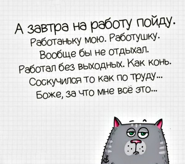 Карикатура "Ура, завтра на работу" - это яркое и забавное изображение, которое передает смешные моменты и эмоции, связанные с возвращением на работу после выходных или отпуска. Она порадует любителей юмора и поднимет настроение всем, кто сталкивается с повседневными трудностями и стрессом рабочей жизни. В самой карикатуре вы можете увидеть сюжетный элемент, который точно наглядно передает ощущения и настроение многих людей в такие моменты. Безусловно, карикатура "Ура, завтра на работу" станет отличным дополнением для вашей коллекции или прекрасным подарком для коллег, друзей или себя самого.