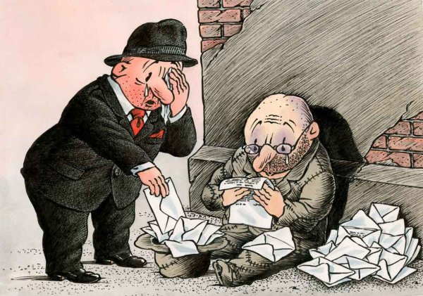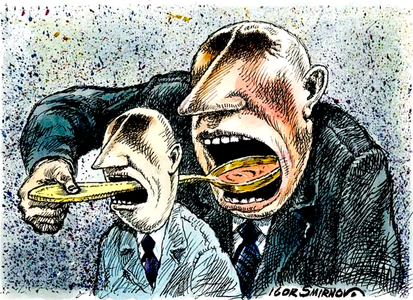 Жадные чиновники - карикатурное изображение представителей государственной власти, которые проявляют необузданную жажду наживы и личных выгод. Эти люди показываются как символ коррупции и безнравственности, готовые на все ради своих интересов. Их лица часто выражают хитрость и злорадство, а их действия направлены только на укрепление собственных позиций и обогащение за счет общества. Карикатуры оживленно передают жадность этих чиновников, создавая комические сцены, в которых они превращаются в мешки с деньгами или жадными грабителями. Такие карикатуры играют важную роль в осмеянии и раскрытии негативных сторон власти, вызывая у зрителей и читателей отрицательные эмоции по отношению к этим символам коррупции.