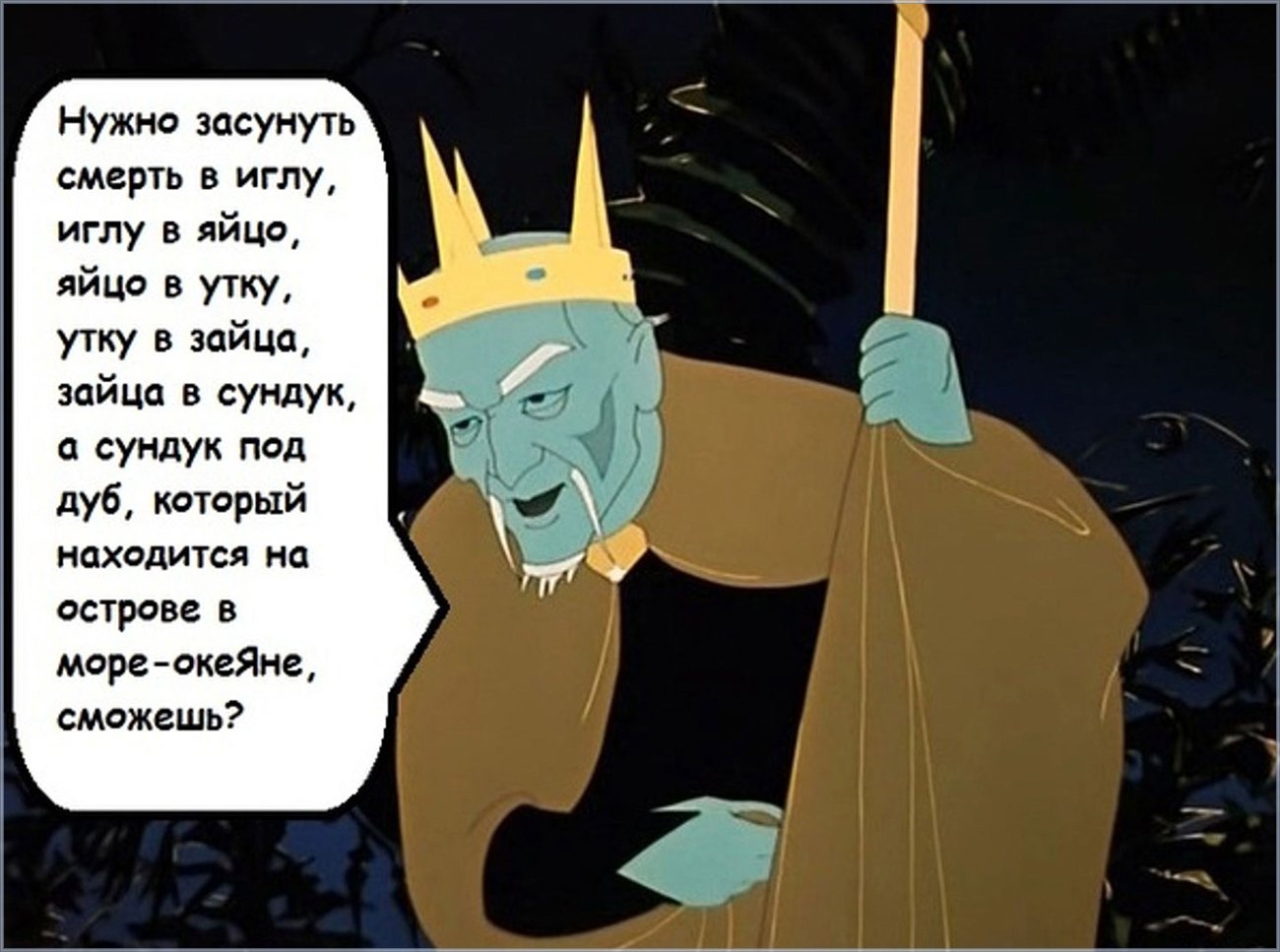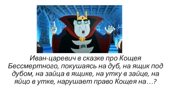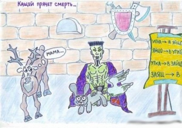 Кощей игла, яйцо, утка и заяц - символы известной русской народной сказки, которые стали неотъемлемой частью нашего фольклорного наследия. Каждый из этих персонажей обладает своей уникальной характеристикой и сопровождает героев в их приключениях. Они отлично запечатлены на множестве карикатур, которые позволяют нам по-новому взглянуть на этих знакомых нам персонажей. Карикатуры с Кощеем, иглой, яйцом, уткой и зайцем расширяют наше представление о классической сказке, добавляя элементы юмора и иронии. Эти изображения прекрасно подходят для различных целей - от создания интересных постеров до использования в детских книгах или анимационных фильмах. Все это делает карикатуры с этими персонажами популярными и любимыми многими людьми.