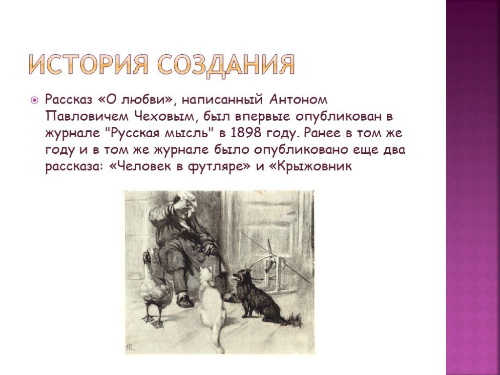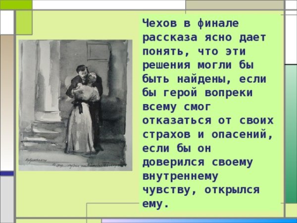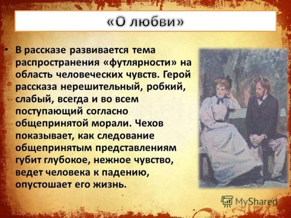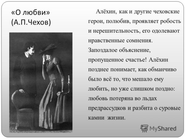 Чехов о любви – это карикатура на рассказы великого писателя Антона Павловича Чехова, которая ярко и с юмором отражает разнообразные аспекты человеческих отношений. В этой карикатуре Чехов поднимает тему любви и сводит ее к общепризнанным стереотипам и клише, что делает его произведения проникновенными и парадоксальными. Он изображает не только радость и страсть, но и разочарование и обман, тем самым показывая сложность и многогранность наших чувств. В своих рассказах Чехов дарит нам возможность увидеть любовь со всех сторон, как глубокую и искреннюю, так и поверхностную и эгоистичную. Таким образом, Чехов о любви – это не только яркая картина человеческой природы, но и возможность задуматься о наших собственных отношениях и почувствовать, что любовь – это всегда истина, которая подвержена изменениям и пересмотру.
