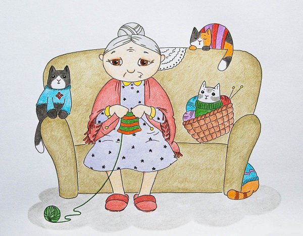 Карикатура "Бабушка вяжет" - это веселая и забавная иллюстрация, которая показывает бабушку, увлеченную вязанием. На рисунке можно увидеть бабушку с яркими глазами и улыбкой на лице, сидящую за столом и аккуратно вязущую свою следующую вещь. В ее руках иголки и клубок пряжи, а рядом лежит уже готовый изделие. Карикатура отражает любовь и страсть к рукоделию, позволяя зрителям почувствовать радость и умиление перед этими творческими усилиями бабушки. Эта карикатура может быть идеальным подарком или декором для комнаты, добавляющим нотку юмора и тепла.