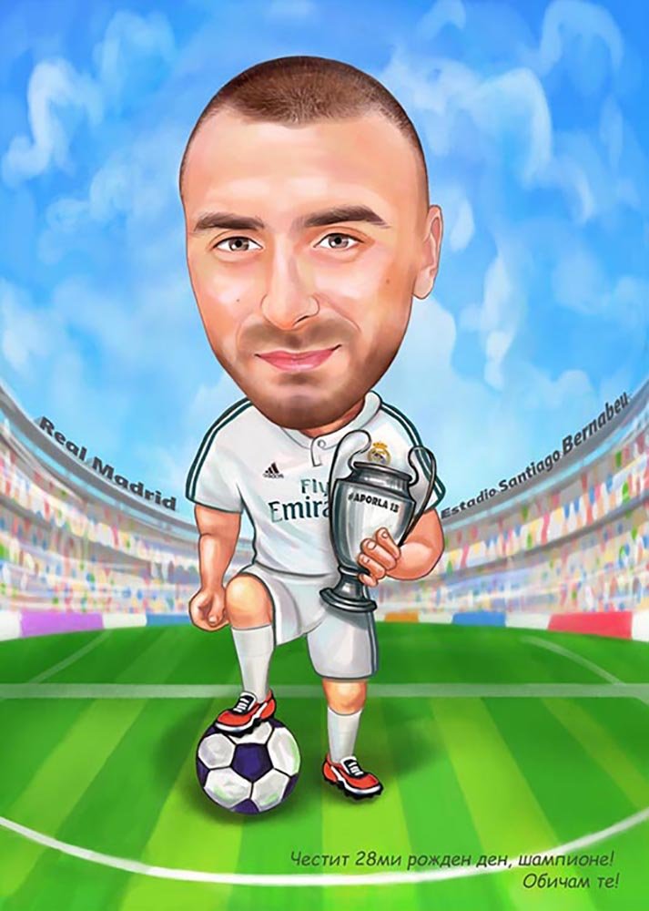 Карикатура, изображающая мужчину, увлеченного футболом, - это веселый и оригинальный способ показать его страсть к этому спорту. На этой карикатуре можно увидеть типичные атрибуты футбола, такие как мяч, футбольная форма и даже стадион. Мужчина может быть изображен с яркими эмоциями, например, радостью при забитом голе или разочарованием после пропущенного шанса. Карикатура создает комический эффект и позволяет нам посмеяться над стереотипами об особом интересе мужчин к футболу. Это запоминающееся изображение, которое может быть использовано в различных печатных и онлайн-материалах, чтобы привлечь внимание и вызвать положительные эмоции у целевой аудитории.