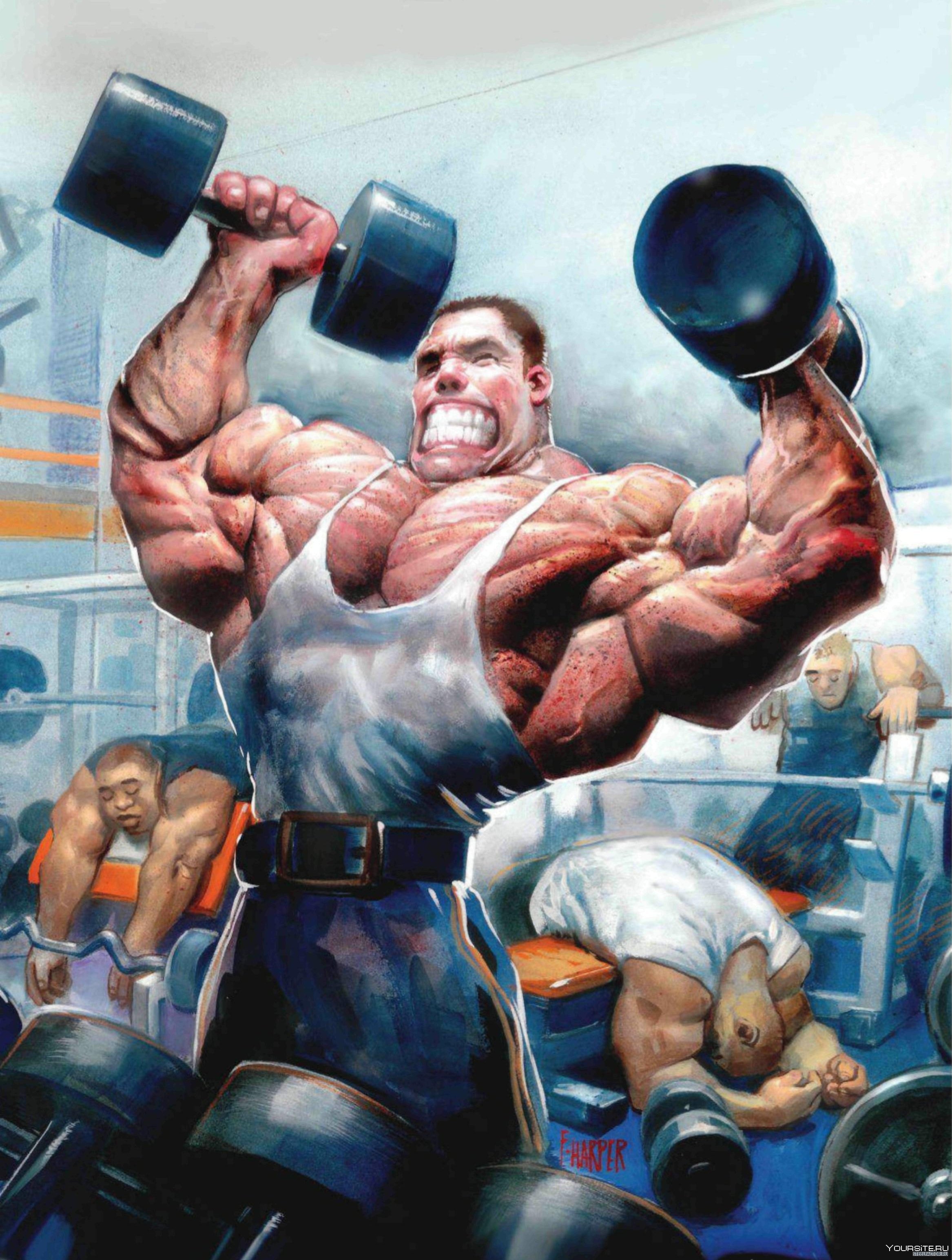 Карикатура тренажерный зал - это веселая и оригинальная иллюстрация, которая позволяет по-новому взглянуть на занятия фитнесом. На картине изображены разные виды тренажеров, люди, занимающиеся спортом, а также смешные ситуации, связанные с посещением тренажерного зала. Карикатуры создаются с юмором и иронией, что делает их привлекательными для широкой аудитории. Они могут быть использованы как украшение стен в тренажерных залах или на домашних стенах, а также в качестве подарка для любителей спорта и хорошего настроения. Карикатуры тренажерный зал не только радуют глаз, но и мотивируют к активному образу жизни и заботе о своем теле.