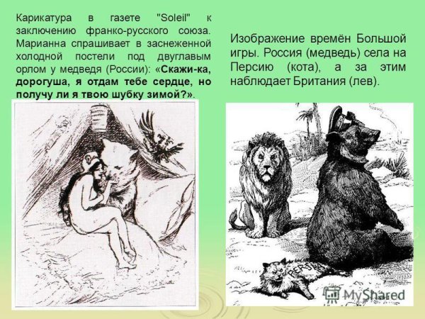 Если вы ищете остроумную и забавную карикатуру для своего проекта или просто ради развлечения, то карикатура "медведь и лев" является отличным выбором. На рисунке изображены два символичных животных - медведь и лев, которые предстают в необычных ситуациях и вызывают улыбку у зрителя. Эта карикатура позволяет насладиться сочетанием природной силы и юмора, создавая неповторимую атмосферу. Будь то комикс, рекламный материал или иллюстрация для статьи, карикатура "медведь и лев" добавит нотку веселья и оживления вашему проекту.
