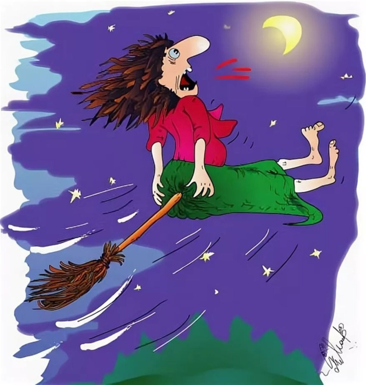 Карикатура ведьма на метле - это удивительное произведение искусства, которое сочетает юмор и фантазию. В этой карикатуре изображена классическая ведьма, сидящая на метле, но весь образ представлен в комичной манере. Выразительные черты лица, длинный искривленный нос, а также характерные черты одежды создают веселый и узнаваемый образ. Комбинация метлы и ведьминого облика наполняет картину игривостью и заставляет улыбаться. Такая карикатура прекрасно подходит для различных целей: оформления праздника Хэллоуин, использования в рекламных материалах или просто для добавления юмористического акцента в интерьере. Она подарит радость и хорошее настроение всем любителям необычных и забавных произведений искусства.