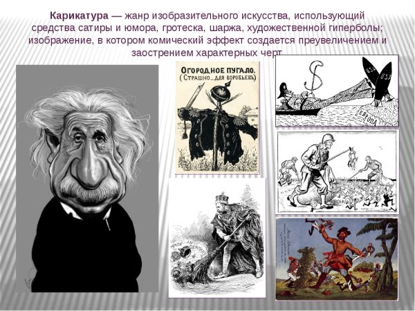 Гротеск - это стиль или жанр искусства, в котором используется преувеличение, деформация и пародирование для создания комического эффекта. Карикатура, в свою очередь, является одним из основных выражений гротеска. Она представляет собой способ искажения образов и выделения их наиболее заметных или характерных черт, чтобы вызвать улыбку или смех у зрителя. Гротеск карикатура позволяет художнику выразить свое отношение к объекту изображения, передать его особенности и недостатки, а также вызвать реакцию и эмоции у тех, кто смотрит на картину. Этот стиль искусства не только развлекает, но и может быть использован для передачи социально-политических комментариев или критики.