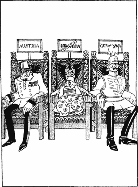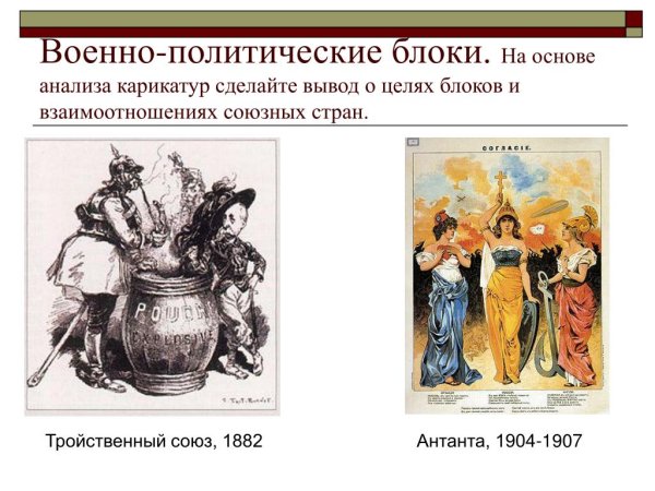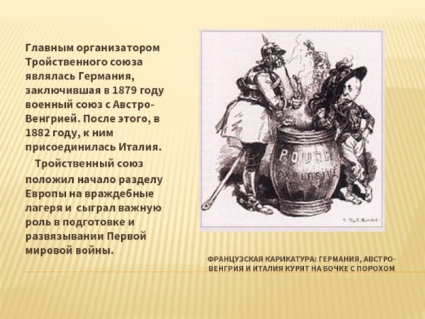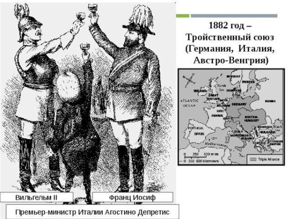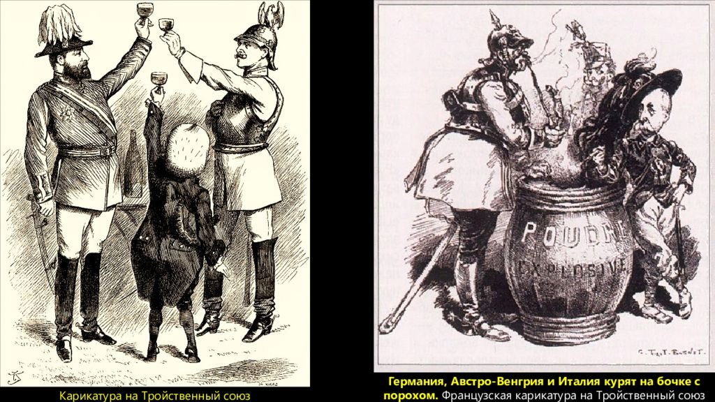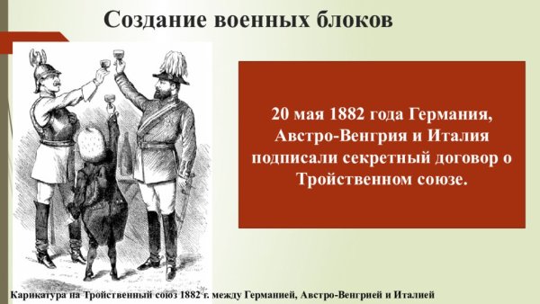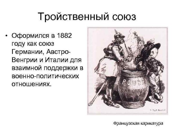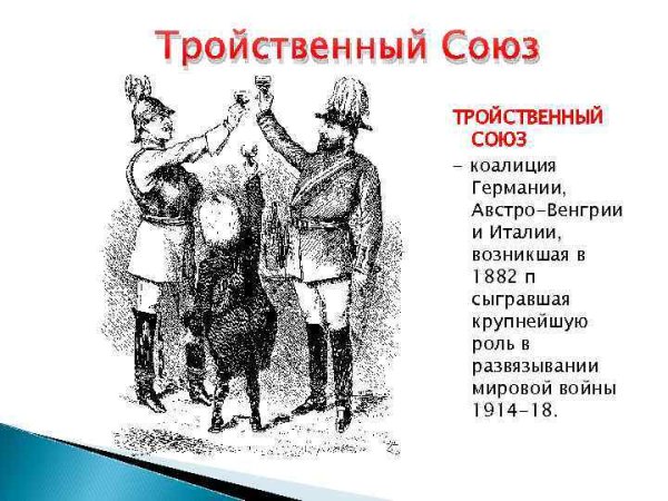 Карикатура, показывающая оформление тройственного союза, может быть веселым и занимательным способом представления этого политического явления. Возможно, на рисунке будут изображены лидеры трех стран, подписывающие документ с улыбками на лицах, но в то же время с видимым напряжением. Может быть, они будут держать в руках разные символы своих государств или факторы, которые объединяют их в этом тройственном союзе. Карикатура может отражать как политические амбиции и стратегии трех лидеров, так и возможные противоречия и сложности, с которыми они сталкиваются при оформлении этого союза. В целом, такая карикатура будет не только развлекательной, но и позволит зрителям задуматься над сутью и значимостью тройственного союза.