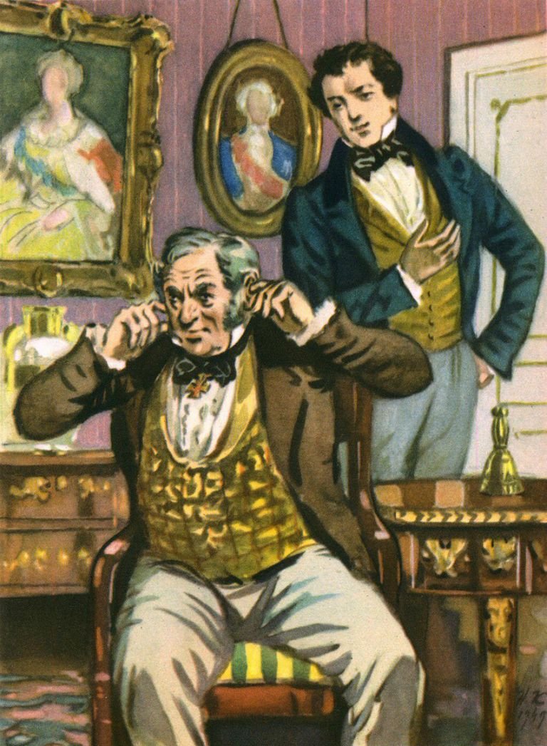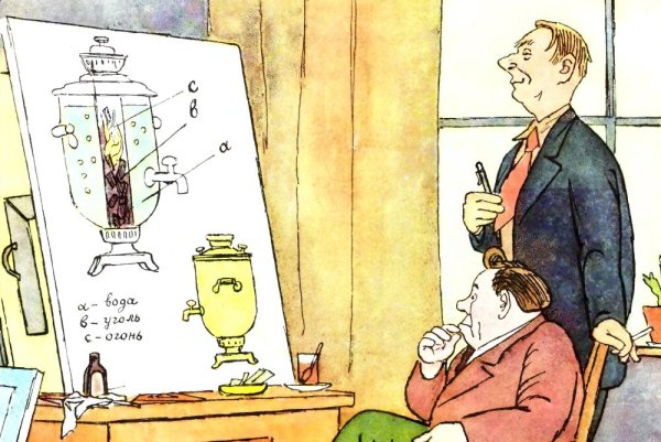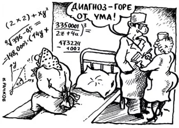 Горе от ума - карикатура, изображающая иронично и сатирически проблемы, возникающие из-за чрезмерного интеллекта и умственной остроты. Эта картина показывает, как некоторые люди страдают от своего собственного ума, попадая в заблуждения и создавая себе проблемы из-за своей непомерной уверенности в своей необыкновенной способности мыслить. Нередко главными героями такой карикатуры являются интеллектуалы, философы или научные деятели, которые, кажется, знают все, но при этом теряются в повседневных ситуациях или не могут найти решение для простых задач. Горе от ума - это не только юмористическая карикатура, но и социальная критика, направленная на осмысление взаимосвязи между умом и жизнью.