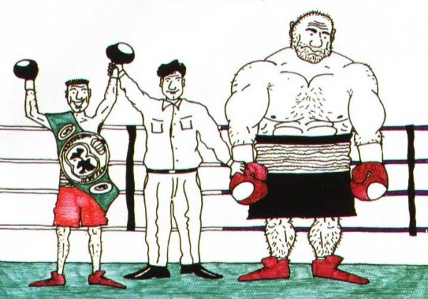 Погрузитесь в мир юмора и бокса с нашей карикатурой "Бокс". Эта забавная и остроумная иллюстрация захватывает энергию и напряжение, характерные для этого спорта. Вы увидите двух боксеров в ринге, которые сразятся не только с использованием кулаков, но и с помощью своего языка. Их экспрессивные лица и живые движения передадут вам всю интенсивность и драматизм этой возможно опасной, но также и захватывающей дисциплины. Карикатура "Бокс" станет отличным подарком для любителей спорта или просто для тех, кто ценит хороший юмор и оригинальное искусство.