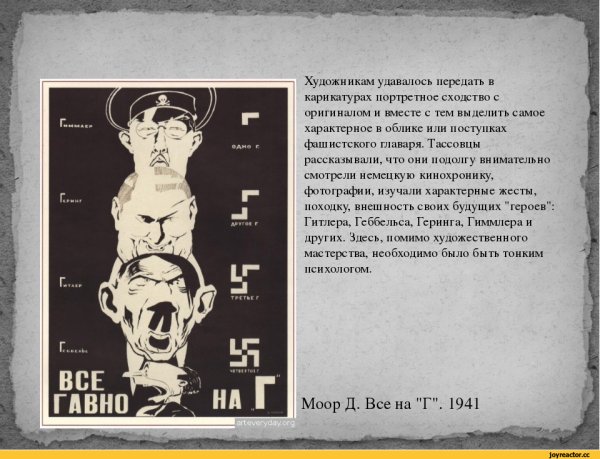 Гитлер, Геббельс и Геринг - это названия трех высокопоставленных лиц в нацистской Германии времен Второй мировой войны. Адольф Гитлер был диктатором и лидером нацистской партии, его пропагандист Йозеф Геббельс отвечал за идеологию и распространение нацистской пропаганды, а глава военно-воздушных сил Германии Геринг занимался организацией и управлением системы военного воздушного флота. Интересно, что эти три фигуры стали объектами карикатур и сатирических изображений, которые до сих пор используются для иллюстрации негативных аспектов нацистского режима и его лидеров.