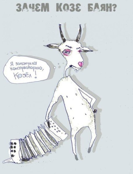 Коза с баяном - уникальная и забавная карикатура, которая точно покорит вас своим необычным сочетанием. На первый взгляд, эти два персонажа могут показаться совершенно несовместимыми, но именно в этом заключается прелесть и юмор данной карикатуры. Коза, символизирующая спокойствие и природную грацию, играет на баяне, что добавляет образу неожиданности и непредсказуемости. Эта яркая и оригинальная работа будет радовать вас своей остротой и дарить улыбку каждый раз, когда вы ее увидите.