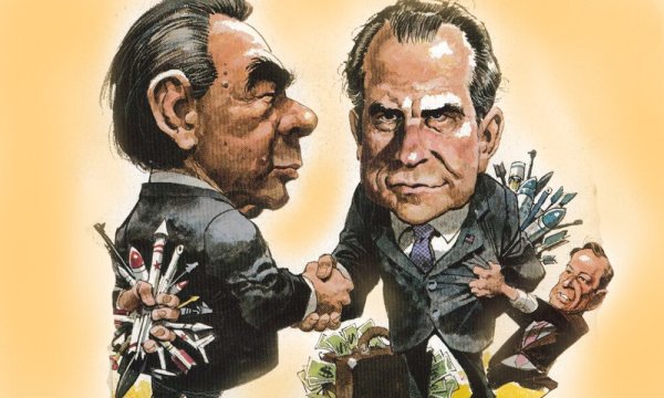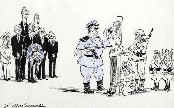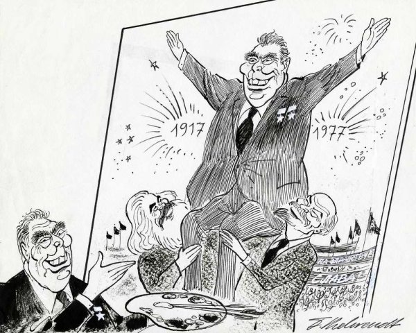 Карикатура на Брежнева и Рейгана - это смешное и забавное изображение двух выдающихся политических деятелей 20 века. Эта картина позволяет нам увидеть их характеристические черты и особенности, а также передает определенные политические моменты того времени. Возможно, в карикатуре Брежнев и Рейган изображены в комическом образе, с преувеличенными физическими особенностями или локтями друг в друга, что подчеркивает их различия и напряженность в их отношениях. Карикатуры такого рода могут быть не только развлекательными, но и иметь определенную политическую и историческую нагрузку, отражая отношения между странами или политические конфликты. В любом случае, карикатура на Брежнева и Рейгана является интересной формой искусства, которая призвана вызвать улыбку или заставить задуматься о прошлых событиях.