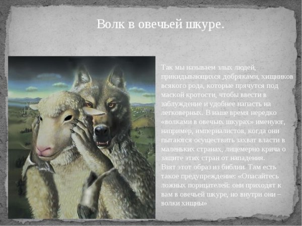 Если говорить о карикатуре "Волк в овечьей шкуре", то она является ярким примером ироничного изображения искаженной реальности. Возможно, на первый взгляд это может показаться смешным или даже невинным произведением, но на самом деле она намекает на скрытые намерения или двойственность некоторых личностей. Карикатура может играть роль зеркала, отражая не только характеры и поведение людей, но и выявлять некоторые социальные проблемы или политические аспекты. Таким образом, "Волк в овечьей шкуре" - это не только юмористическое изображение, но и инструмент для анализа и критики общества.