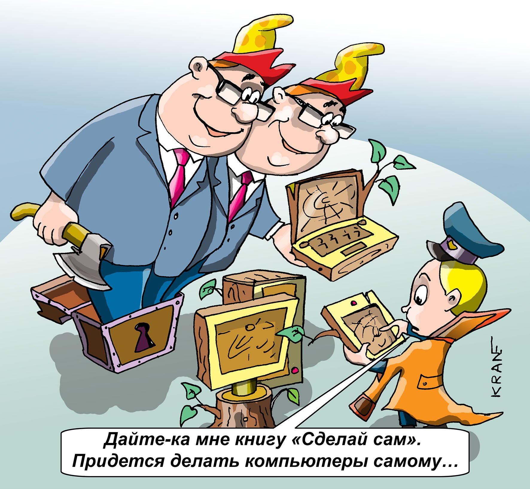Евгений Кран - известный и талантливый художник-карикатурист, чьи работы широко известны и пользуются популярностью. Его карикатуры отличаются остротой смысла, юмором и точным портретным сходством. В работах Евгения Крана можно увидеть знакомые политические и общественные лица, которых он изображает в своем неповторимом стиле. Он умело комментирует актуальные события и проблемы, вызывая улыбку у зрителя и заставляя задуматься. Кроме того, Евгений Кран является автором множества книг и альбомов с собственными работами, которые привлекают внимание любителей искусства и любопытствующих.
