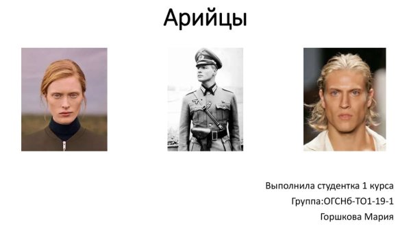 Идеальный ариец - это образ, который воплощает идеалы и стереотипы немецкой расы. Согласно нацистской идеологии, он должен быть высоким, сильным, с широкими плечами и пропорциональными фигурами. Внешность такого человека должна быть идеальной, с чистыми чертами лица, светлыми волосами и голубыми глазами. Это изображение арийца было создано для поддержания и распространения нацистской пропаганды и служило основой для притеснений других рас и национальностей. Однако, в наше время, идея "идеального арийца" рассматривается как карикатурный и устаревший стереотип, не имеющий места в современном обществе, основанном на равенстве и толерантности.