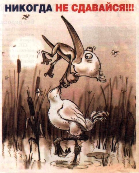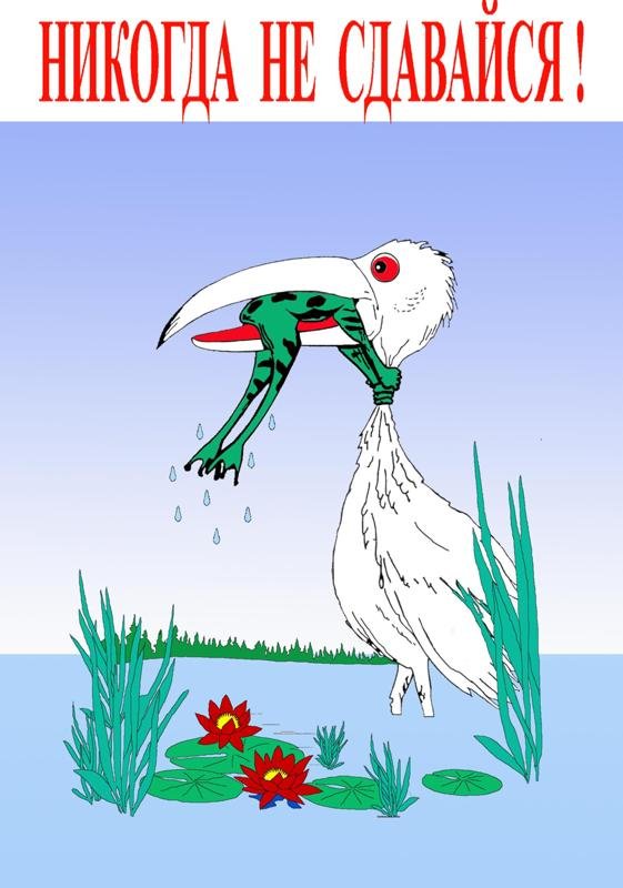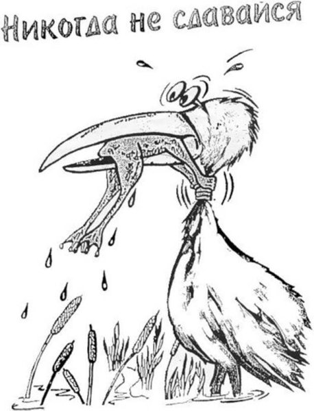 Карикатура с аистом и лягушкой - это веселое и оригинальное изображение, которое никогда не перестает радовать своих зрителей. Используя иронию и юмор, эта картина отражает различные ситуации из жизни, добавляя к ним неожиданные повороты. Изображение аиста, символизирующего рождение или поступление чего-либо нового, и лягушки, символизирующей преображение и перемену, создает интересный контраст и передает глубокий смысл. Никогда не сдавайся - такое послание становится основной идеей этой карикатуры, ведь она напоминает нам о важности сохранять оптимизм и находить веселье даже в самых трудных ситуациях. Это произведение искусства позволяет нам посмотреть на мир по-новому, расширяя наше воображение и вдохновляя на новые идеи. Карикатура с аистом и лягушкой - это не только искусство, но и урок настойчивости и веры в свои возможности.
