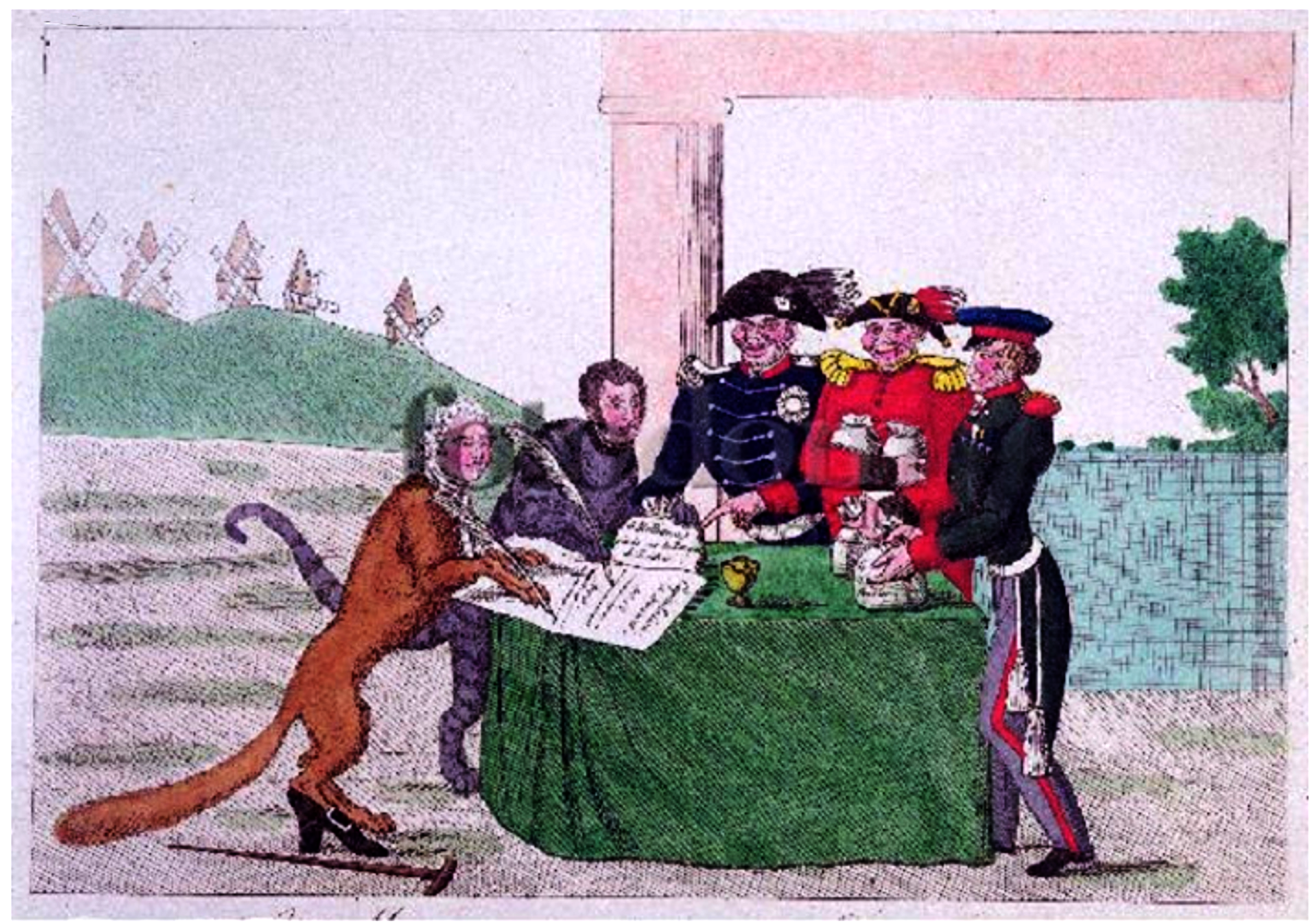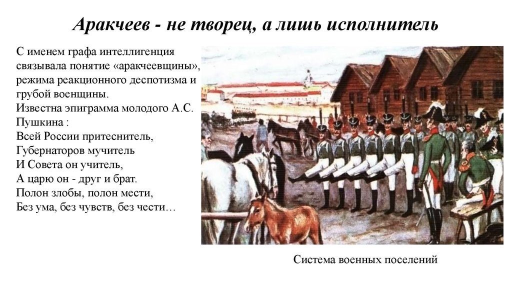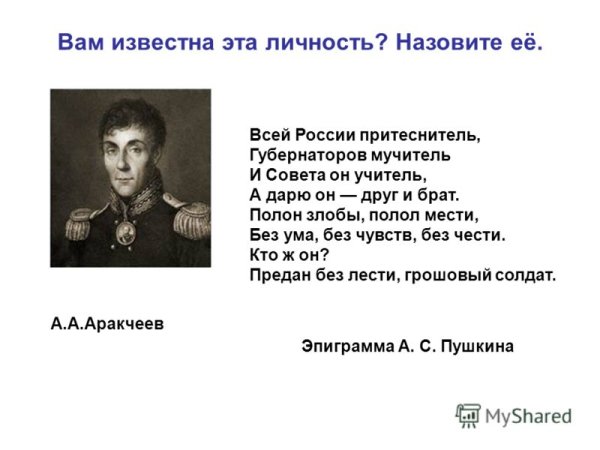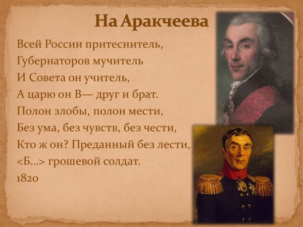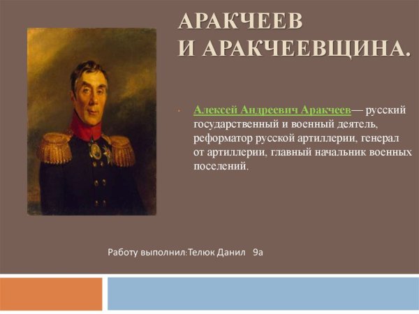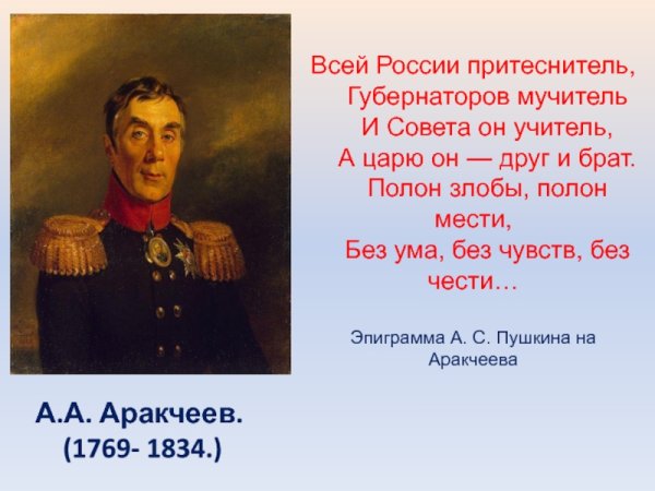 Карикатура на Аракчеева - это яркий и сатирический образ, который отражает основные черты этой исторической личности. Александр Аракчеев был видным политическим деятелем в Российской империи, известным своим жестким и авторитарным подходом к управлению. В карикатуре он часто изображается с вытянутыми чертами лица, грубыми манерами и железным кулаком, символизирующим его силу и жестокость. Карикатурный образ Аракчеева позволяет зрителям и читателям с иронией и юмором взглянуть на этого исторического персонажа и его политические действия.