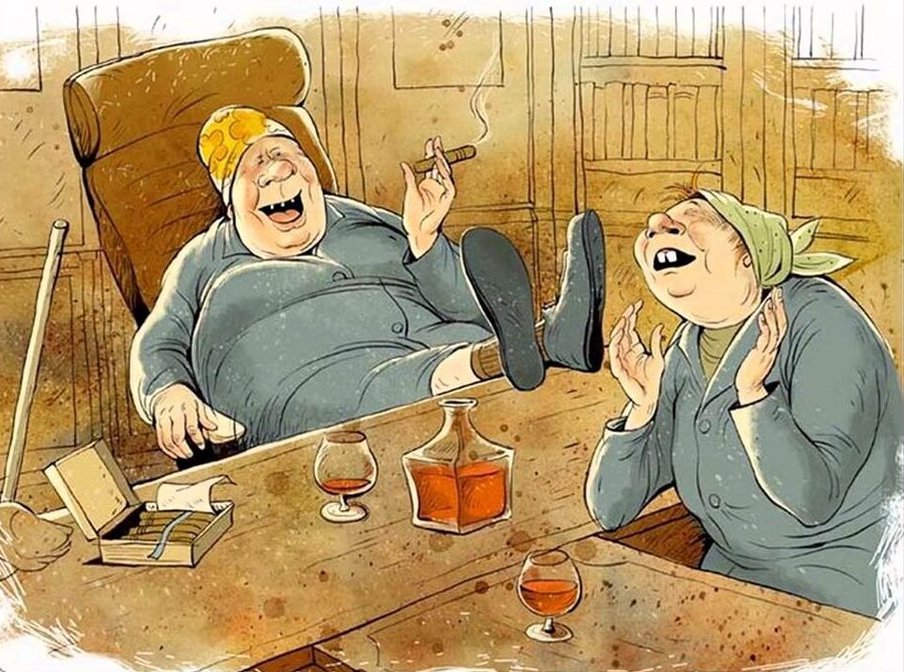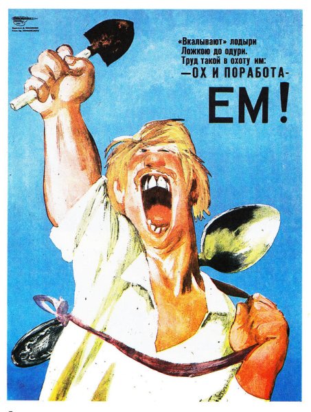 Карикатура "Кто не работает, тот ест" является ярким и насмешливым представлением популярного выражения. Она визуализирует ситуацию, в которой люди, не прилагая никаких усилий или работая недостаточно усердно, получают все блага жизни без каких-либо последствий. Карикатура может быть интерпретирована как ироническое отношение к социальным явлениям, где некоторые люди полагаются на других, чтобы достичь своих целей или получить материальную выгоду. Она вызывает улыбку и задумывает зрителя над проблемами лени и бездействия, подчеркивая важность работы и активного участия в обществе.