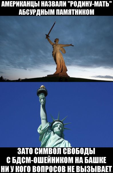 В целом, фраза "Родина Мать и Статуя Свободы карикатура" может отражать некий контекст, в котором данные символы подвергаются искажению или критике, но конкретное значение и толкование данной фразы зависит от контекста использования.