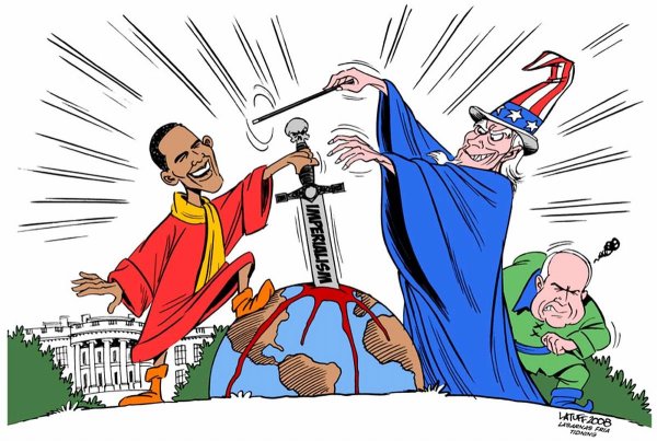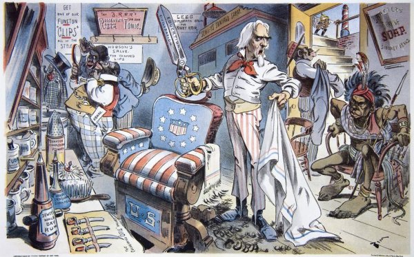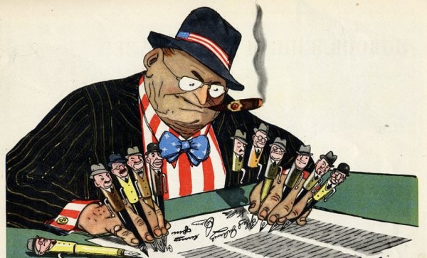Американский империализм - это карикатурное изображение политической и экономической политики Соединенных Штатов, которая стремится к экспансии и доминированию в других странах. Это понятие возникло в конце XIX - начале XX века и описывает агрессивное вмешательство США в дела других наций с целью установления своего контроля над их ресурсами, рынками и влиянием. Американский империализм часто ассоциируется с использованием военной силы, экономическими санкциями, установлением протекторатов и диктовкой условий для других стран. Карикатурный образ американского империализма создается в основном путем выделения его негативных аспектов, таких как нарушение суверенитета других государств, эксплуатация местного населения и подавление свободы слова. Такой подход к описанию помогает подчеркнуть критическую позицию наблюдателя по отношению к этому феномену.