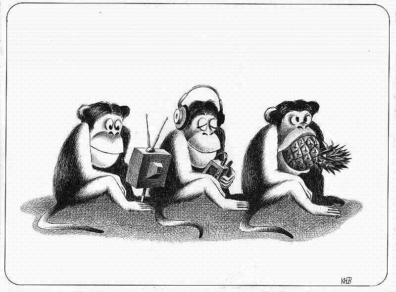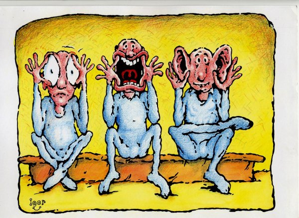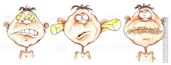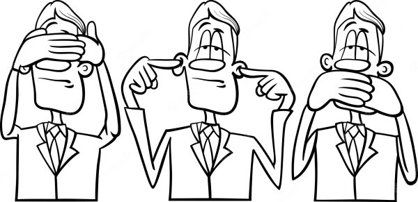 Карикатура "Ничего не вижу, ничего не слышу" - это произведение художественной графики, которое символично отражает парадоксальную ситуацию, когда люди закрывают глаза и уши перед проблемами и негативными явлениями в окружающем мире. Она вызывает у зрителя размышления о нашей способности игнорировать проблемы, а также об опасностях, которые могут возникнуть из-за этого. Карикатура представляет собой сочетание иронии и юмора, позволяя зрителю задуматься о своем отношении к тому, что происходит вокруг него.