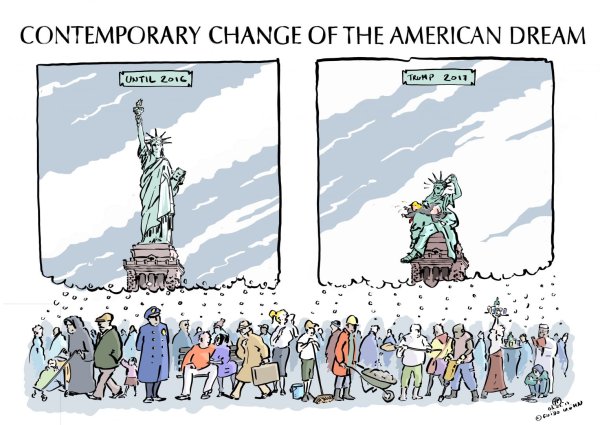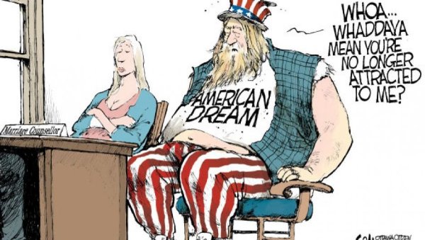 Карикатура "В погоне за американской мечтой" является ярким и остроумным воплощением идеи о преследовании американской мечты. В ней изображены герои, которые решительно стремятся достичь своих целей, однако вместо успеха они сталкиваются с комическими ситуациями и неудачами. Каждая деталь карикатуры тщательно продумана, чтобы подчеркнуть безумие этой погони за иллюзорной обещанной землей. Она призывает задуматься над тем, что счастье и успех находятся не только в материальных благах, но и в достижении более глубоких ценностей. Эта карикатура точно передает иронию и юмор, которые характеризуют жизнь и стремления современного общества.