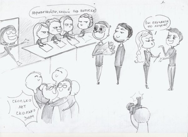 Карикатура "Встреча одноклассников" - это яркое и смешное изображение, которое передает весь колорит и необычность встречи давних друзей. На рисунке можно увидеть разнообразных персонажей, каждый со своим неповторимым обликом и манерой поведения. Однако, несмотря на все различия, главная идея карикатуры заключается в том, что время и расстояние не могут разрушить связи и приятные воспоминания, связанные с школьными годами. В этой карикатуре находится щепотка юмора и ностальгии, которая улыбает и заставляет задуматься о ценности старых друзей.