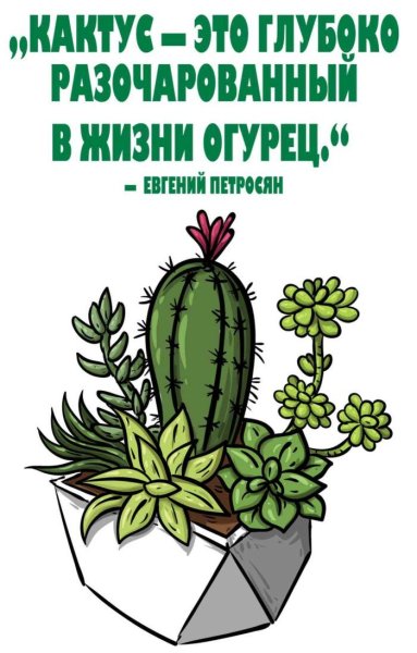 Карикатура "кактус" - это искрометное и остроумное изображение кактуса, исполненное в комическом стиле. Она является забавной и юмористической интерпретацией этого колючего растения. Карикатура "кактус" может подчеркивать особенности внешнего вида кактусов, их смешные формы или выражение лица, что придает им еще больше шарма и неповторимости. Такая карикатура может быть прекрасным элементом декора для интерьера, подарком или использоваться для иллюстрации статей о растениях или юмористических материалов. Всего один взгляд на карикатуру "кактус" вызывает улыбку и радость, добавляя хорошего настроения и позитива в повседневную жизнь.